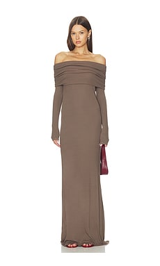 СТРУЯЩЕЕСЯ ПЛАТЬЕ ИЗ ШЕЛКОВОГО РУБЧИКА С ОТКРЫТЫМИ ПЛЕЧАМИ
