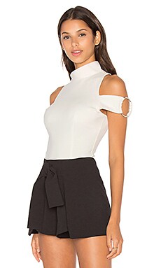 АСИММЕТРИЧНОЕ БОДИ С ВЫСОКИМ ВОРОТОМ И КОЛЬЦОМ НА РУКАВЕ