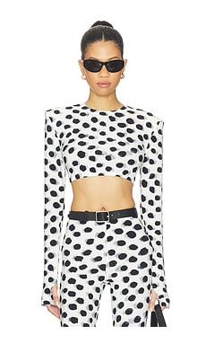 Cropped Long Sleeve Shoulder Pad Top