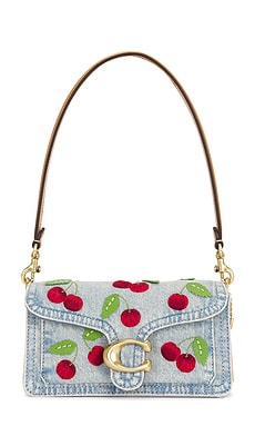 Cherry Embroidered Denim Tabby 20 Shoulder Bag