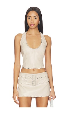 ТОП LIDDY FAUX LEATHER STUDDED HALTER