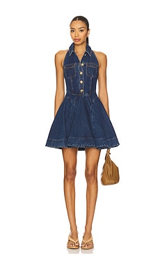 МИНИ-ПЛАТЬЕ ИЗ ДЖИНСОВОЙ ТКАНИ БЕЗ РУКАВОВ С РАСКЛЕШЕННОЙ ЮБКОЙ