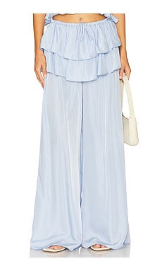 ШТАНЫ С РЮШАМИ НА ТАЛИИ И РАСКЛЕШЕННЫМИ ШТАНИНАМИ